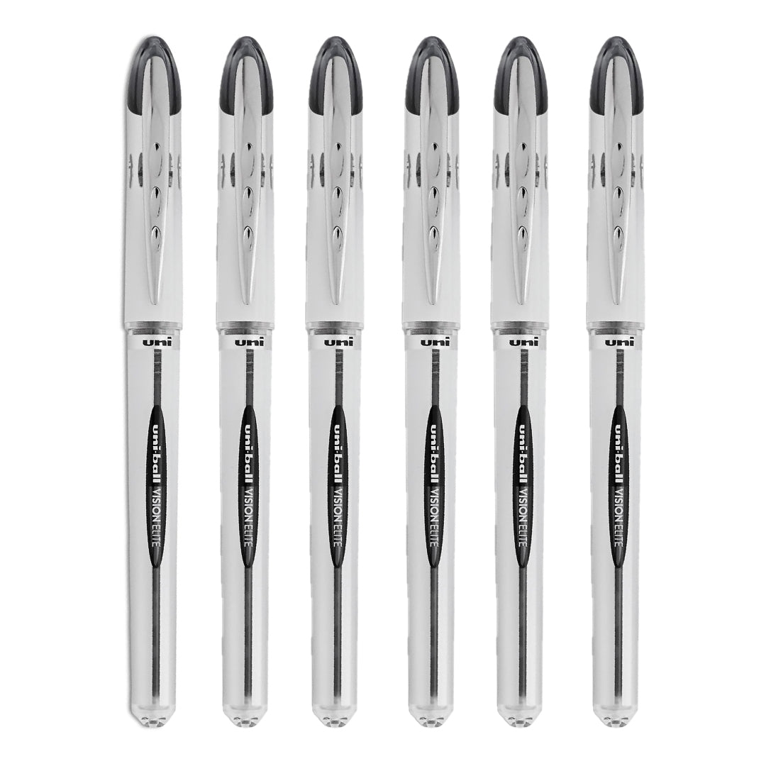 Uni-ball vision elite bold point rollerball pen, 0.8mm black ink, pack of 6