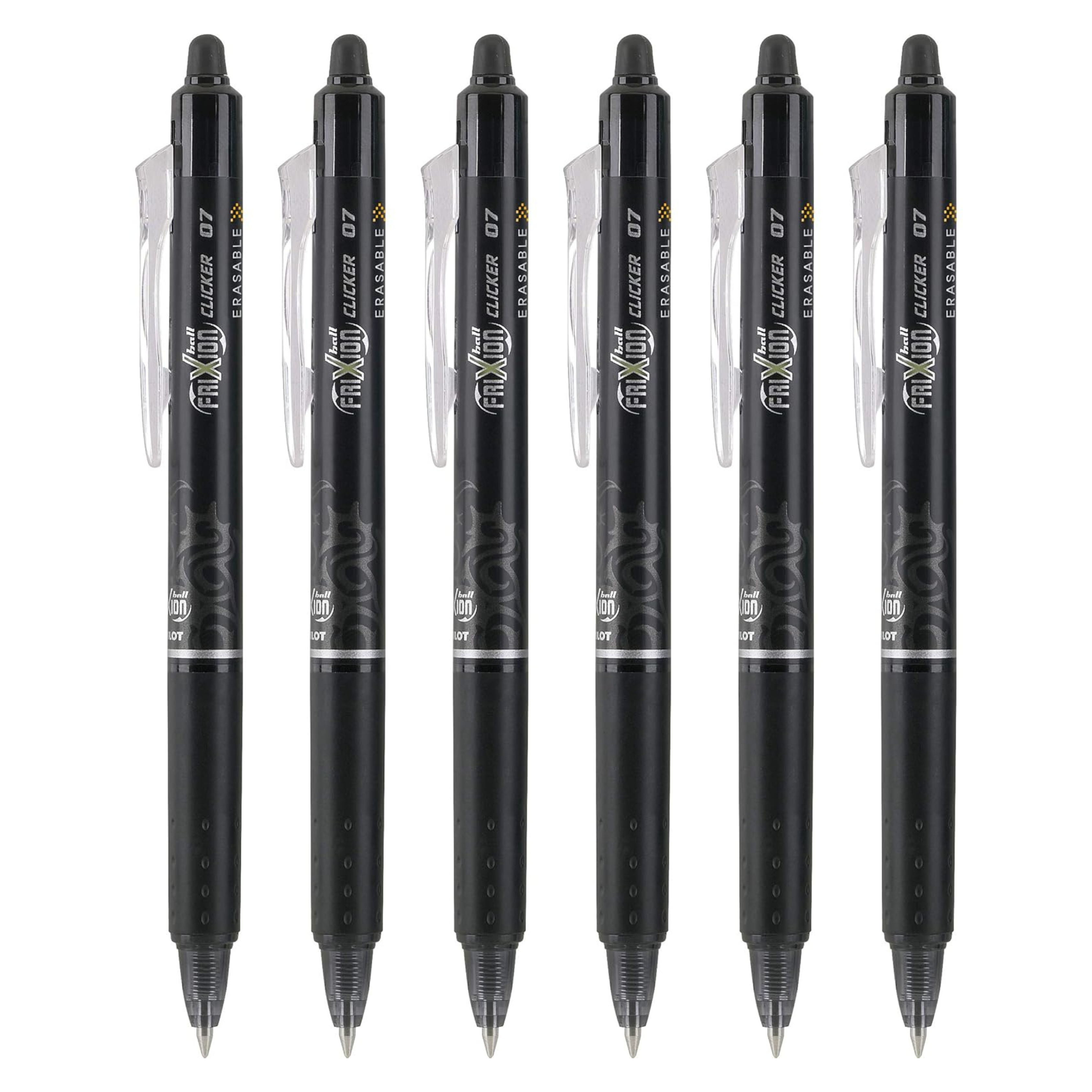 Pilot frixion ball clicker retractable erasable gel pen, fine point, 0.7mm, black ink, 6 count