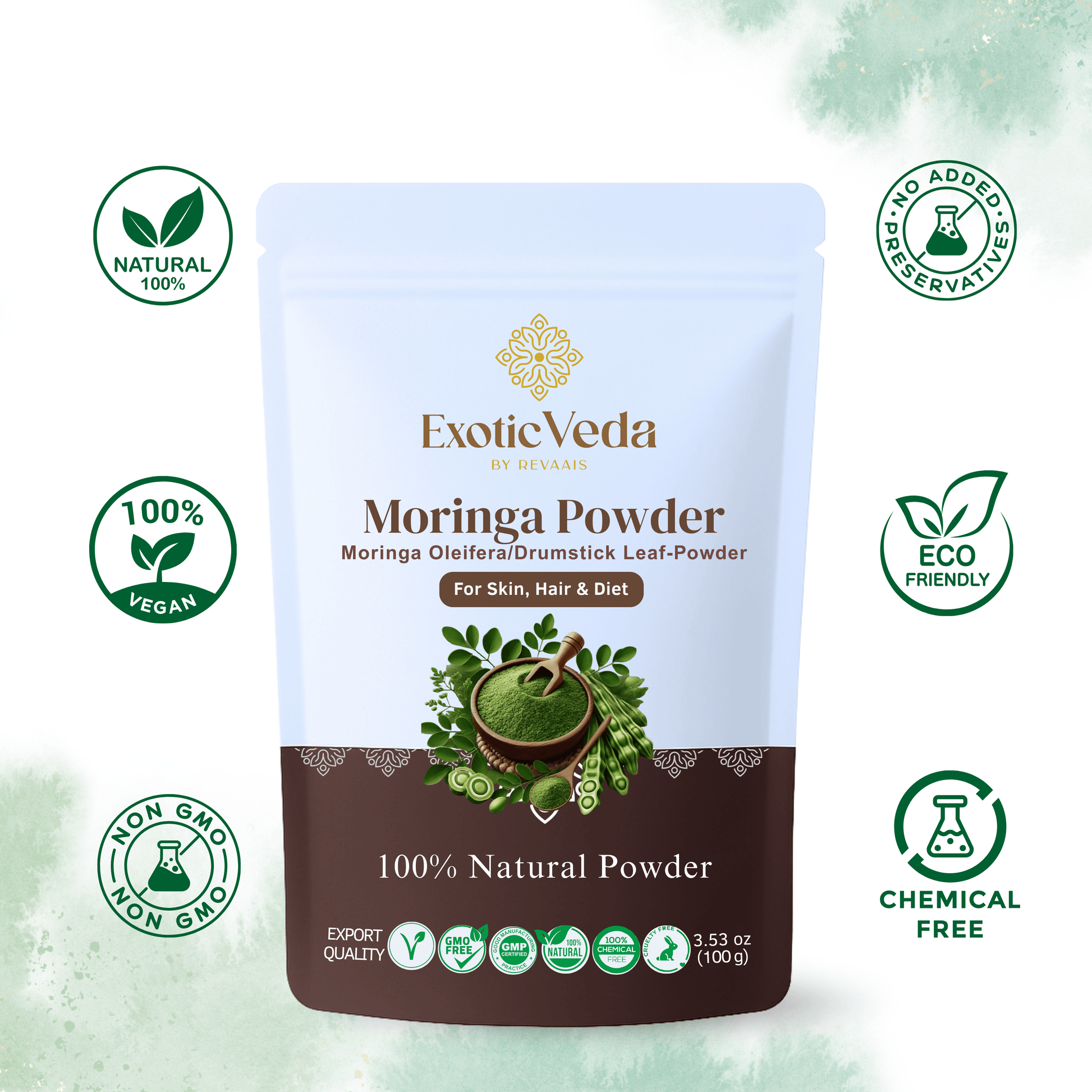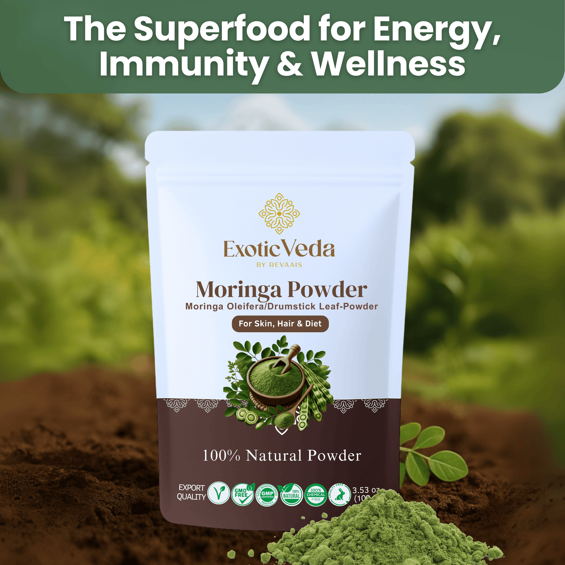 Exotic Veda Moringa Leaf Powder | 100% Natural , Vegan, Non-GMO Superfood – 100g | Rich in Antioxidants & Nutrients